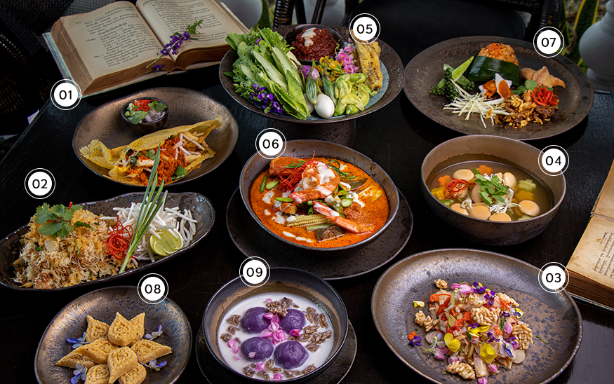 In researching authentic recipes from the royal courts of the past, he came upon dishes served at key events in the country’s history, stretching from the distant past up to Bangkok’s Bicentennial celebration. Chef Kanin also uncovered recipes recorded by noble families with connections to the Palace.